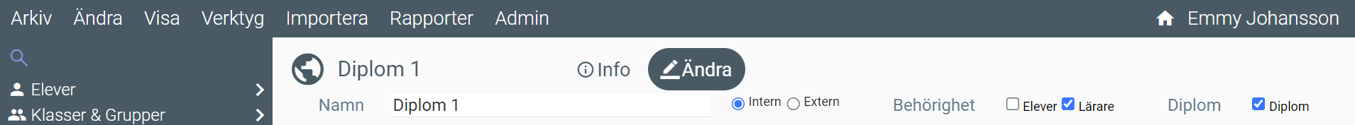 - Här kan man sedan säga att sidan ska fungera som ett diplom genom att fylla i checkboxen "Diplom" längst till höger.