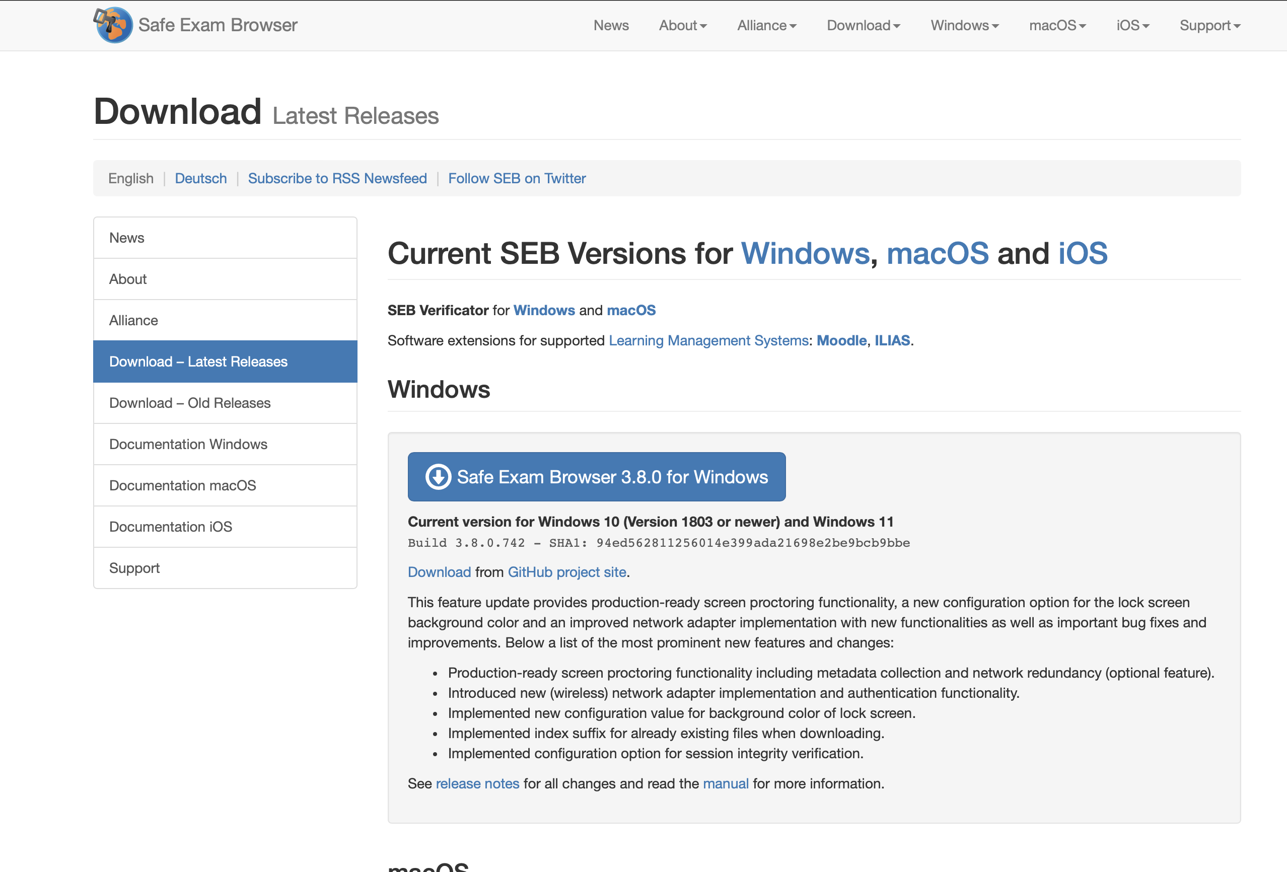 Notera att det kan ta lång tid att ladda ner Safe Exam Browser. Därför bör alla provdeltagare göra det i god tid innan provet ska skrivas.