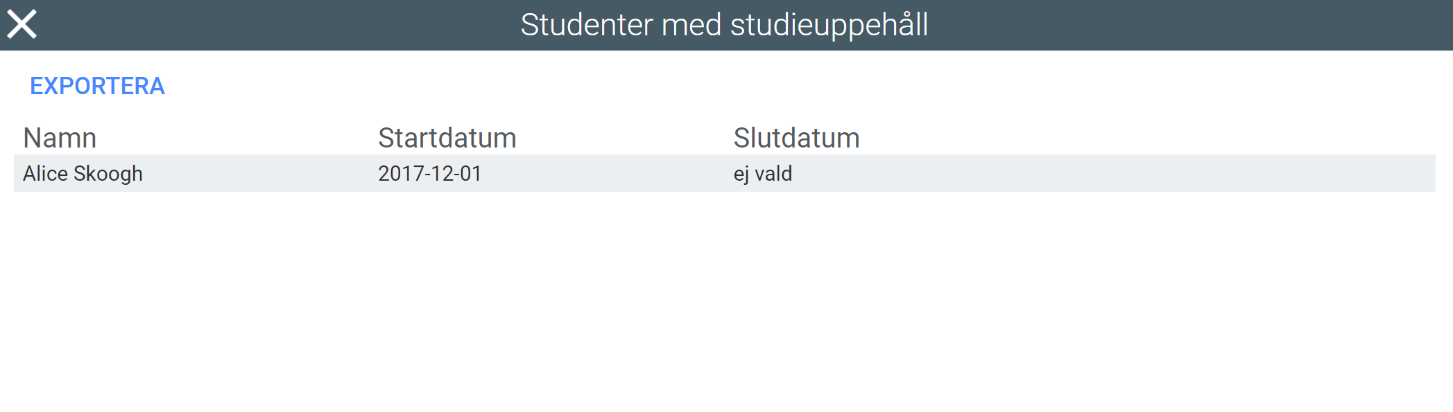 Rapporten över studieuppehåll visar alla pågående studieuppehåll.
